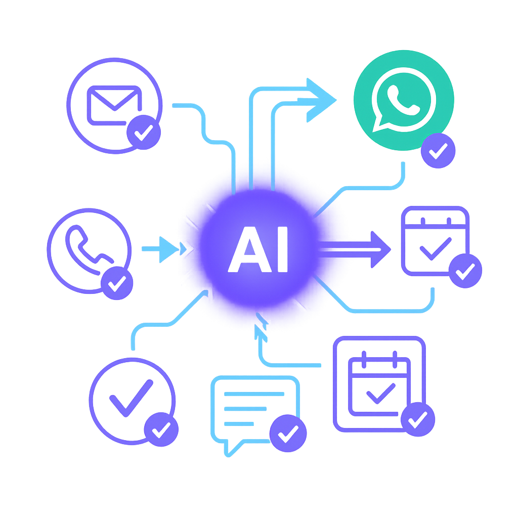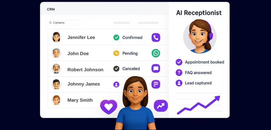 An AI Receptionist is a virtual assistant powered by artificial intelligence that answers calls, replies to messages, manages appointments, and provides customer support across multiple channels 24/7 — without needing a human operator.